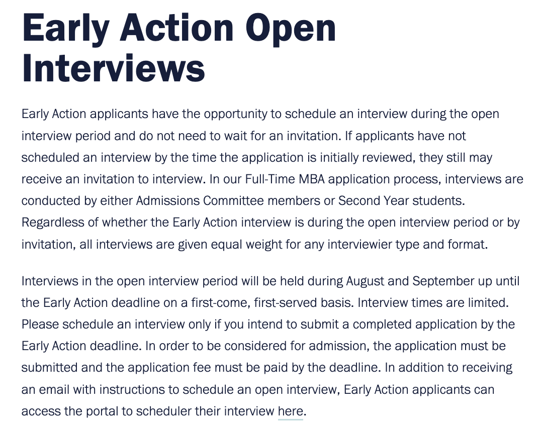 If you are an Early Action applicant, you can schedule an interview without invitation during the Open Interview Period. This period takes place from August to September.